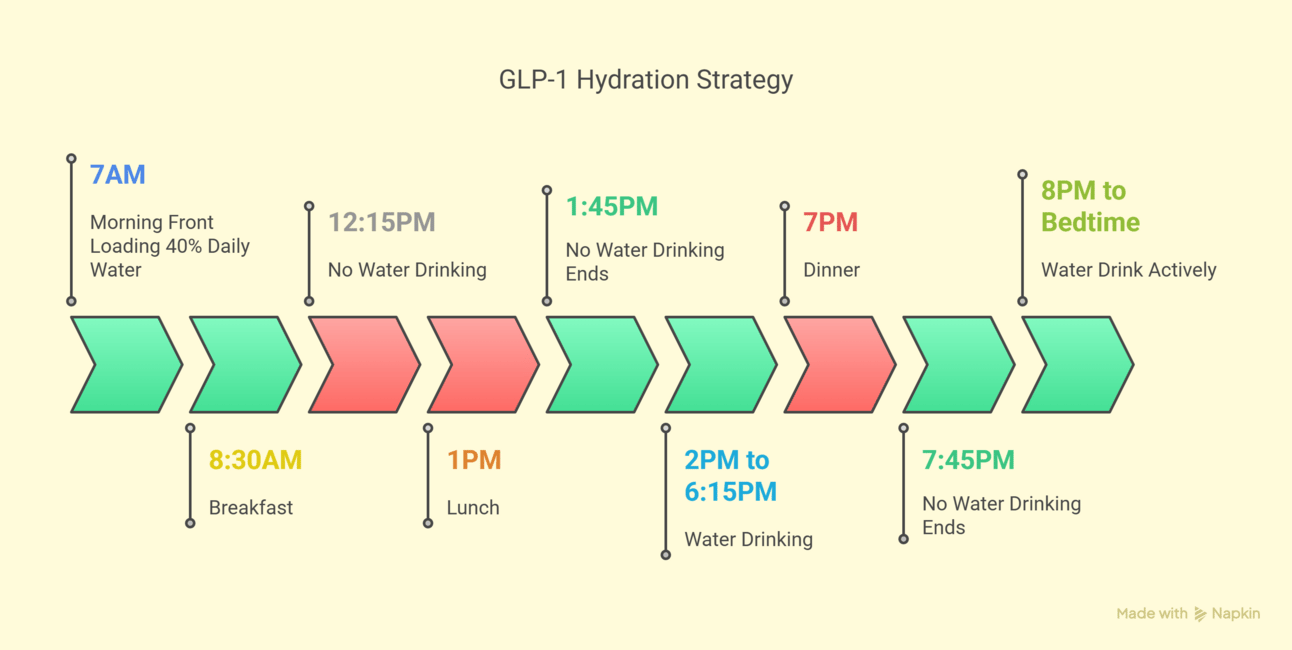 Conventional wisdom tells you to spread water intake evenly throughout the day. This doesn't work for GLP-1 users.
